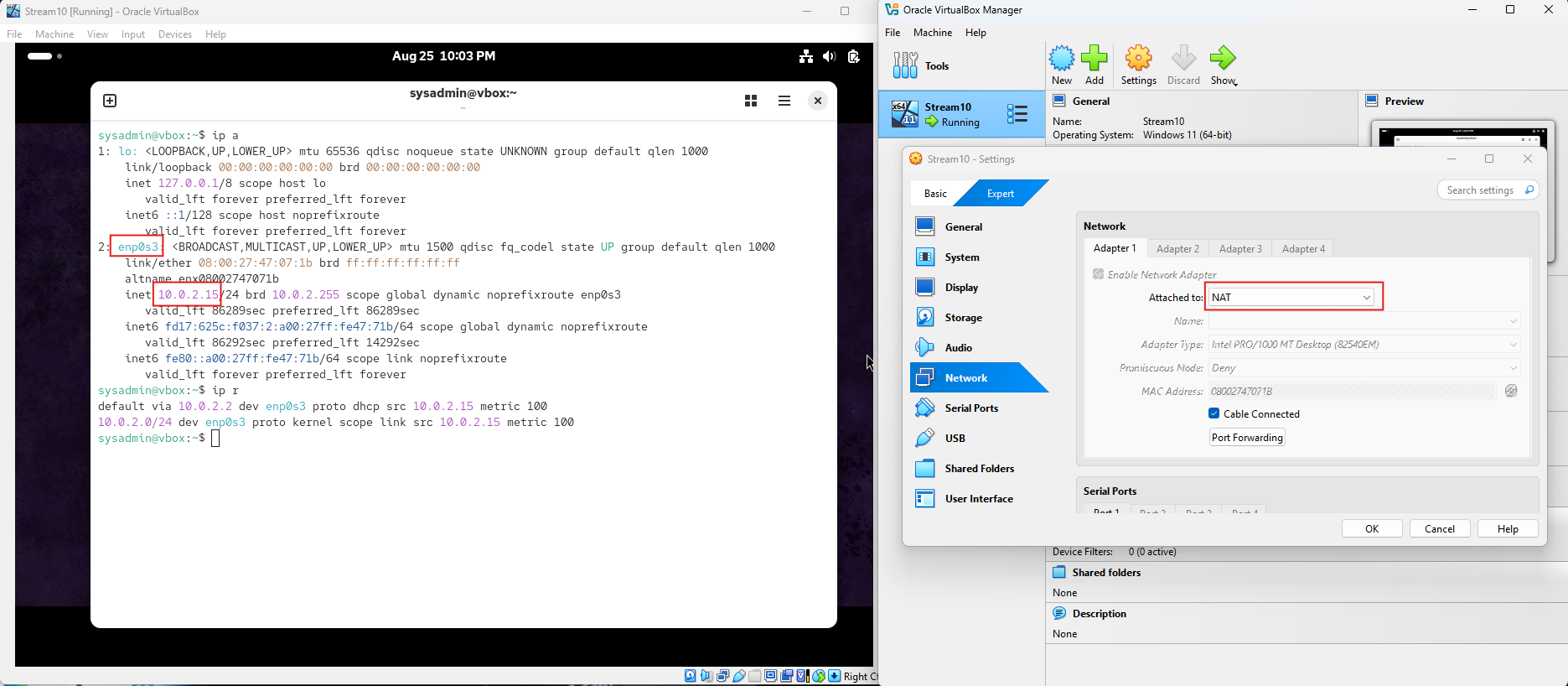 - First network interface is NAT interface