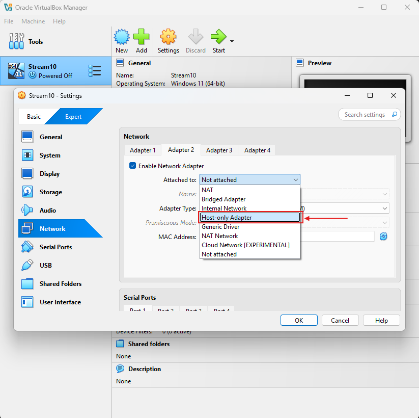 Then add Adapter2 as Host-only network. it's second interface