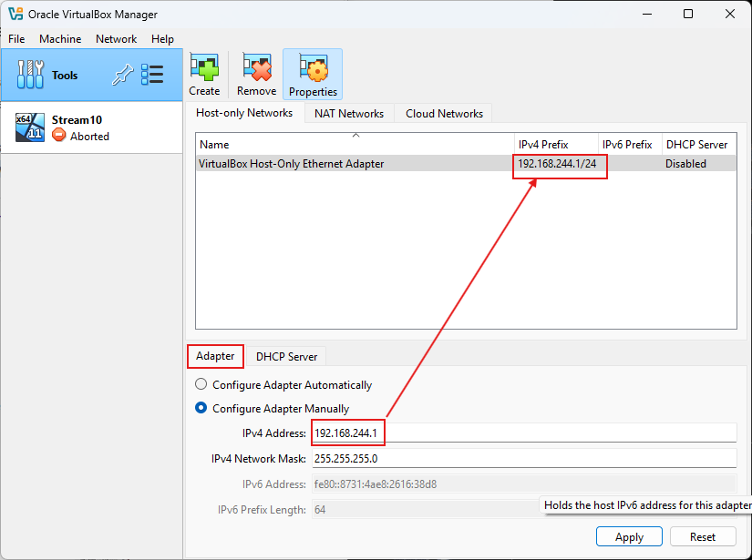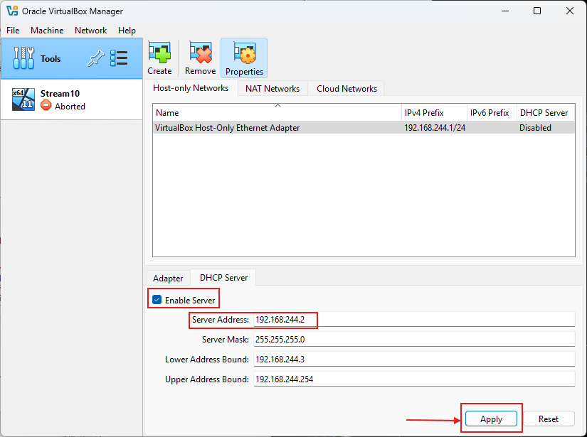 - add host only network 192.168.244.1/24