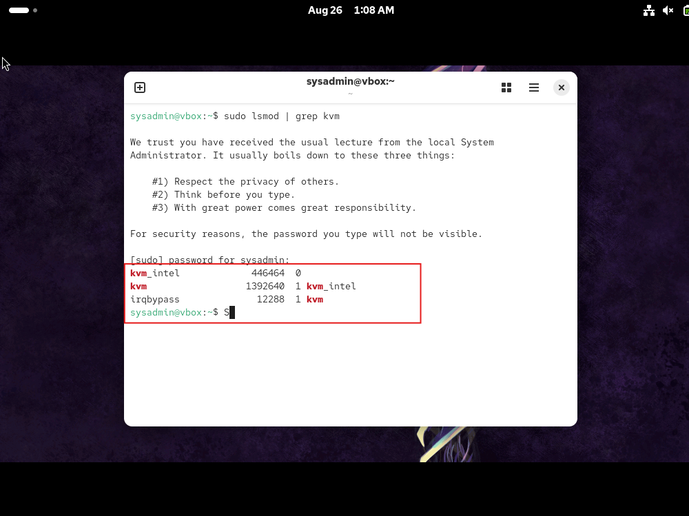 lsmod | grep kvmto verify kernel module