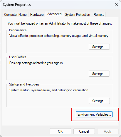 - Click Environment Variable