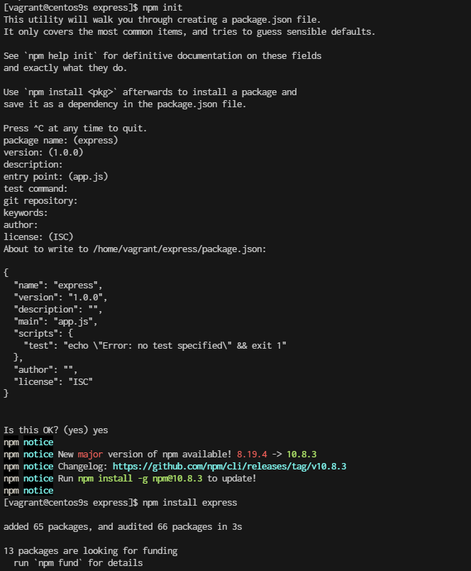 [vagrant@centos9s express]$ ls -l