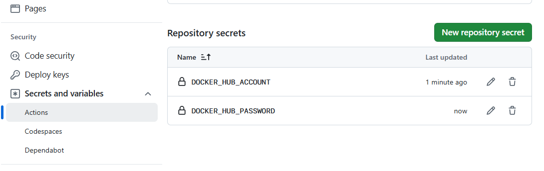 1. Repository Secrets: - Scope: Repository-level secrets are accessible to all workflows within the specific repository where they are defined. - Usage: If you define a secret at the repository level, it can be used across all workflows and jobs in that repository, regardless of which environment (production, staging, etc.) the job runs in. - Common Use: These secrets are often used when you have workflows that apply across the entire repository, such as Continuous Integration (CI), where you might push Docker images or deploy code. Example: