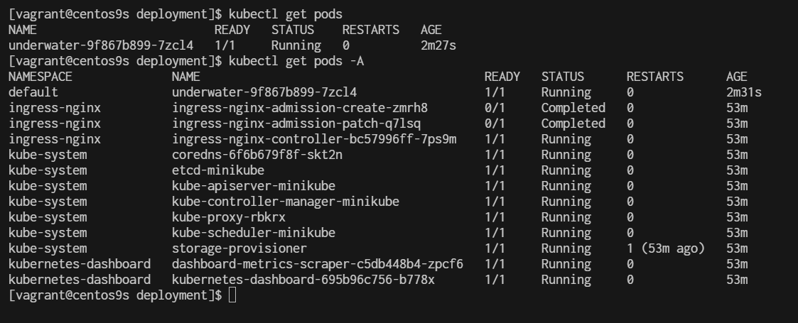 Step2 Cluster pods see all the pods running in the minikube cluster using the command