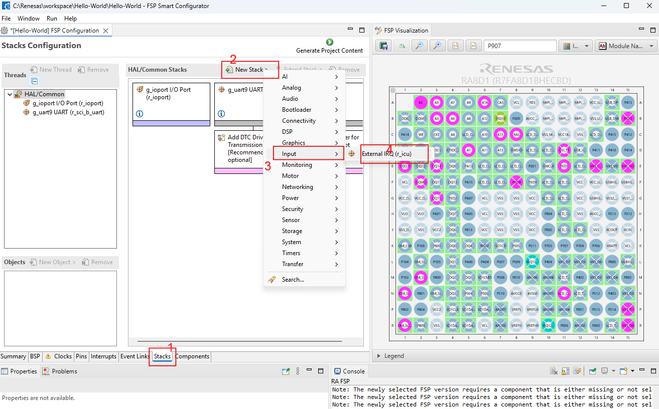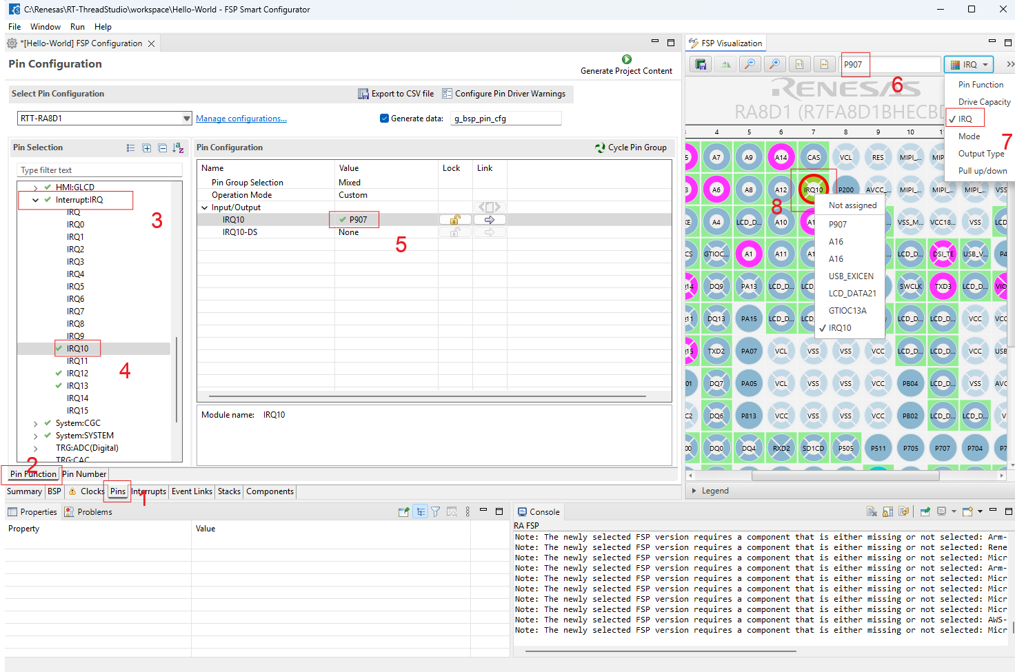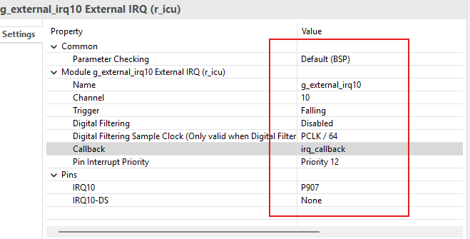 เป้าหมายต้องการคือ ใช้ RASC ทำการตั้งค่า pin หมายเลข P907 ให้ทำหน้าเป็น interrupt หมายเลข IRQ10