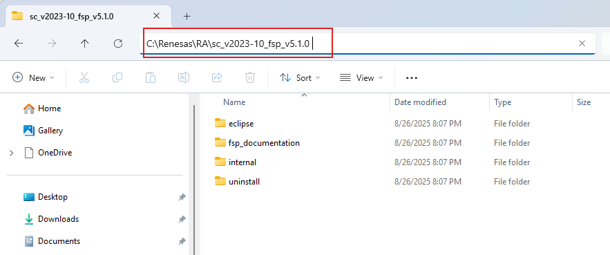 C:\Renesas\RA\sc_v2023-10_fsp_v5.1.0(คือ ตำแหน่ง folder ที่ติดตั้ง FSP)