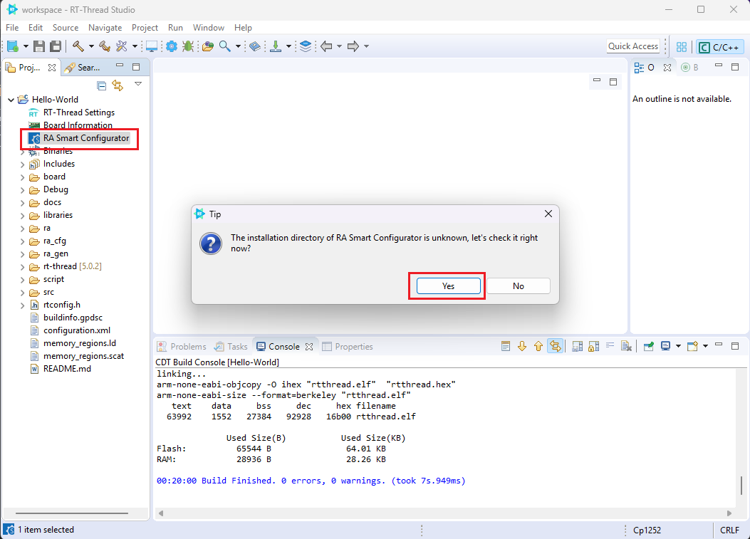 ให้ทำการเลือก Folder ที่ได้กำหนดในขั้นตอนการติดตั้ง เมื่อทำการเลือก แล้ว จะเข้าสู่ Renesas smart Configurator tools