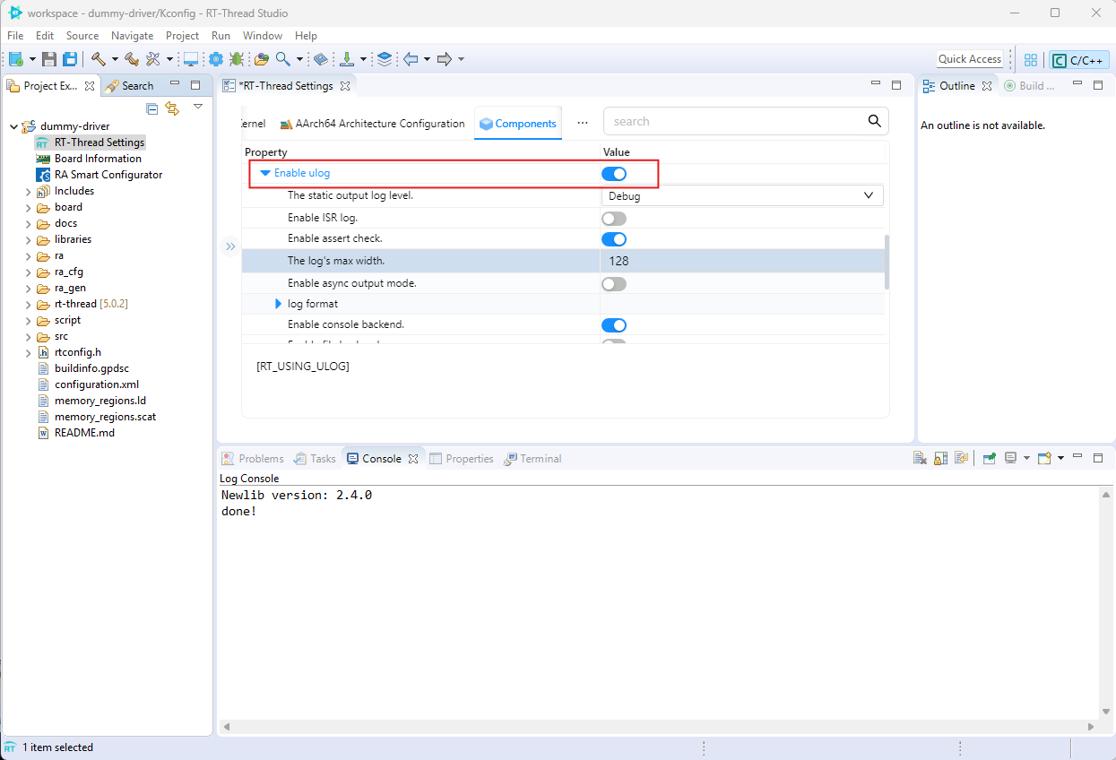 dummy-driver - กด เลือก RT-Thread Setting จะเป็นการเปิด config ในส่วน RT-Thread setting