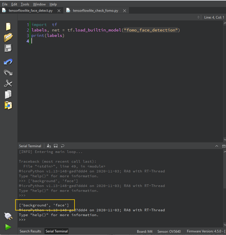 - โมเดล FOMO Face Detection ของ OpenMV จะมี 2 class: ["background", "face"]